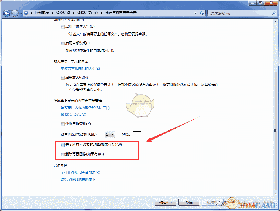 下图中,将箭头指向的两个选项取消勾选(Win10也一样)
