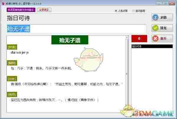 含有13000余条成语,堪称一本成语小词典。如果您有更全的成语数据库可以提供给我,让这个小程序功能更完善。