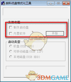 朗科官方出品的U盘格式化工具,主要功能是制作启动盘,也就是说可以把U盘做成可启动的电脑功能的,而且它还可以制作内置软件,把软件制作到u盘启动盘里,比如一些需要dos下启动的软件,也可以直接默认制作启动盘,支持usb fdd软盘,usb zip可移动磁盘,usb hdd本地磁盘,对于有软盘启动需求的电脑可以使用此工具来制作。