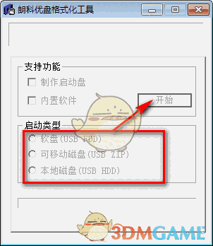 二、打开格式化工具,选择要进行的功能和启动类型。