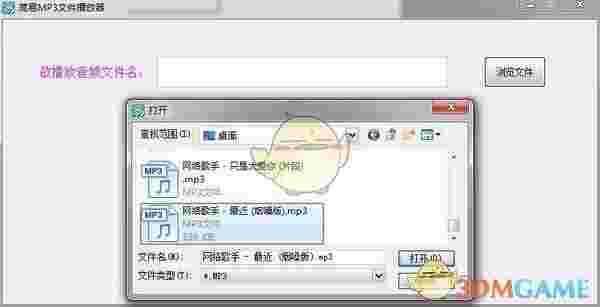 《简易MP3文件播放器》一款很简单的mp3播放器,软件小巧方便,而且打开文件的速度很快,不需要登录。用户直接在界面上选择mp3文件打开即可,有需要的快来下载吧!
