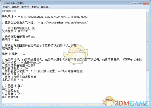 DeskSide.ini界面设置(其中包含天气网址的设置)