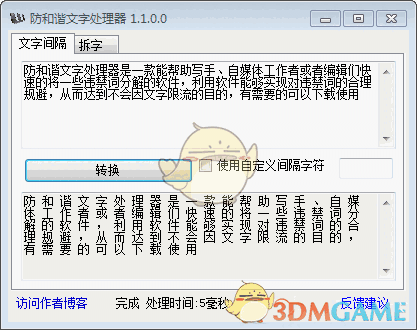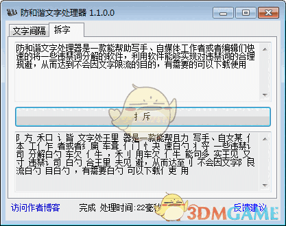 《防和谐文字处理器》在网络上很多地方有一些违禁的字或者词不能发送出来,这个软件可以帮用户解决这个问题。用户只需要将文字放入框内就可以进行操作,让用户没有障碍。
