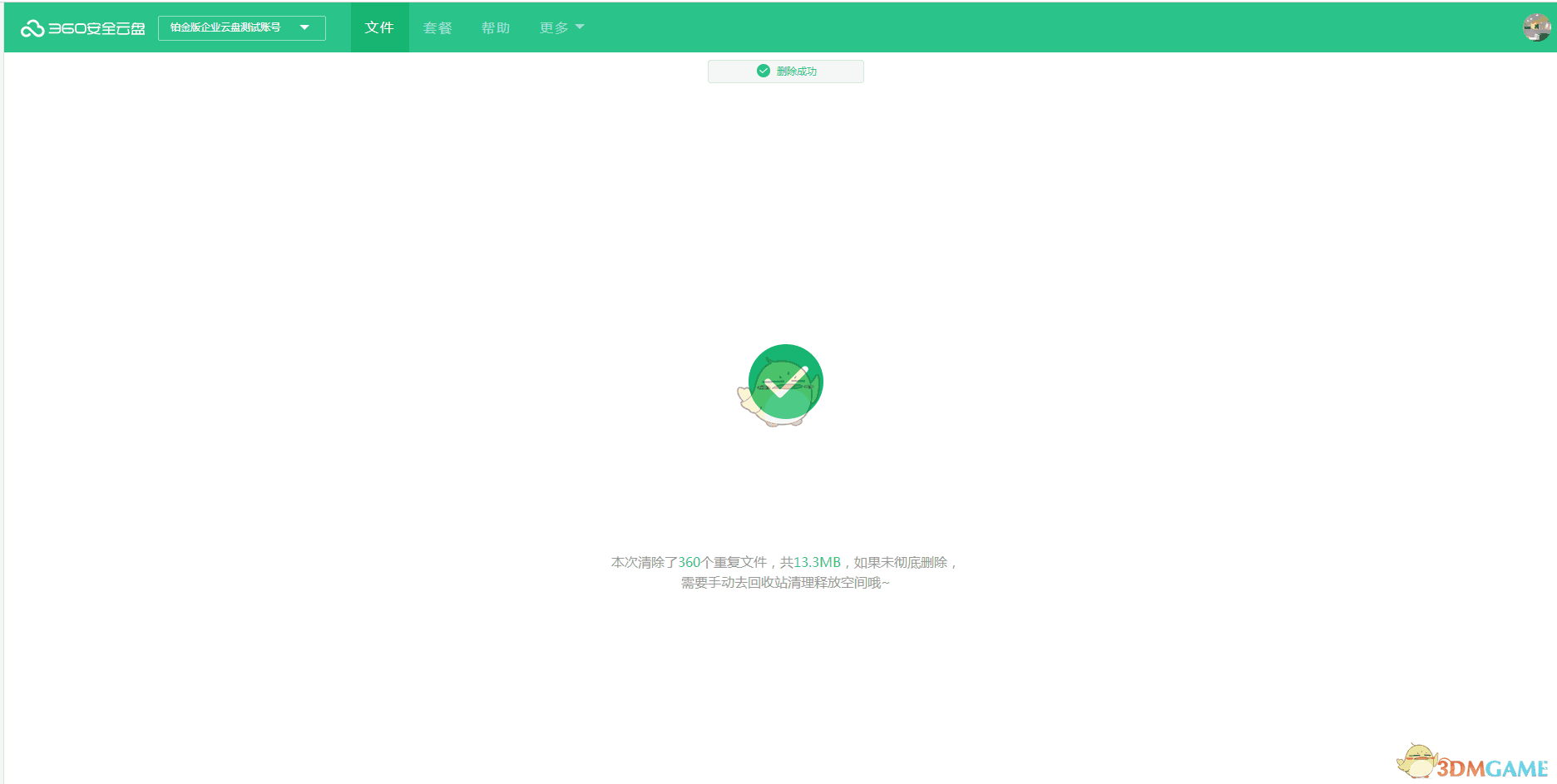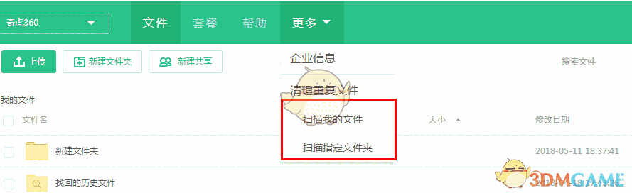 1、登录后进入文件管理页,页面右上角是“清理重复文件”入口,可扫描“我的文件”,也可以扫描指定文件夹: