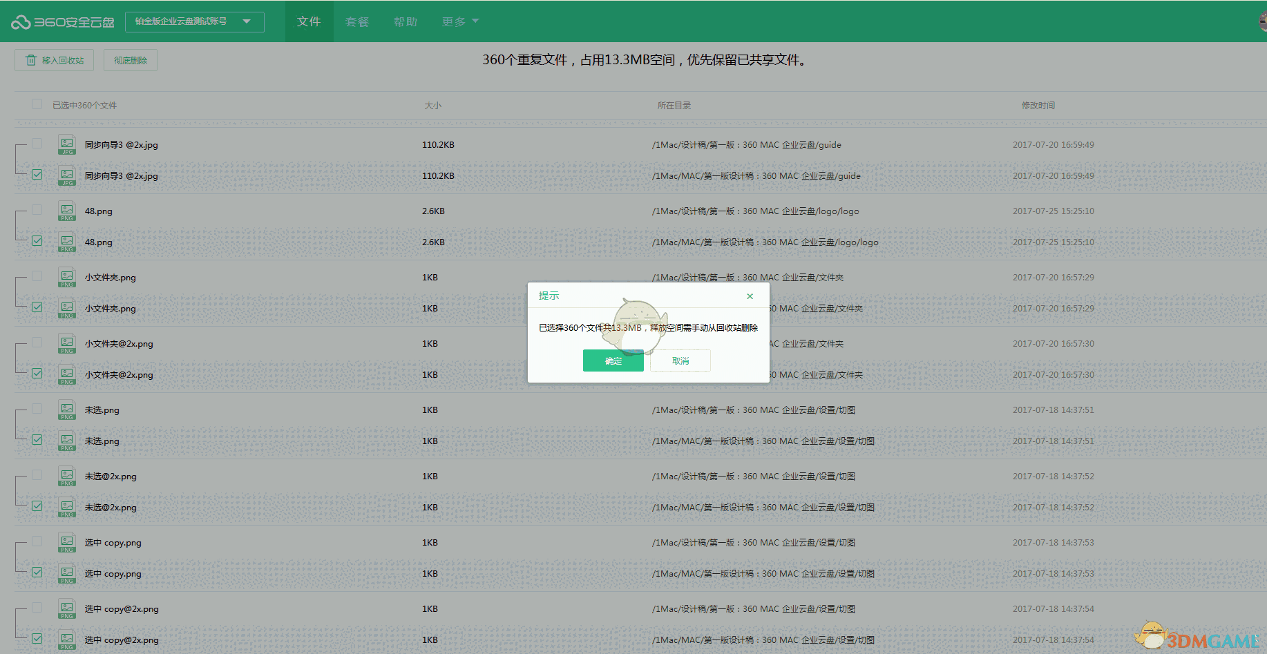 将重复文件彻底删除,将直接释放空间,删除文件不可找回。