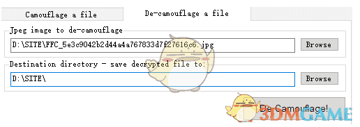 设置伪装与反伪装密码恢复文件需要在De-camouflage下进行,选择生成的图片及存放隐藏文件的目录。