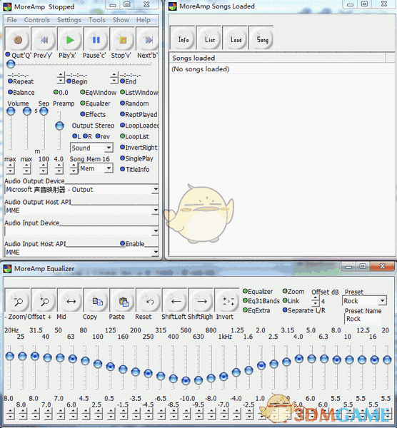 MoreAmp是一款功能强大的CD抓轨和音频转换播放软件,支持多种音乐式,mp3,ogg,flac,mp4,wav,的wva,mp4、自律的wma,均衡器,重复循环。支持31频段均衡器、循环播放、变频,和存盘前即时预览。