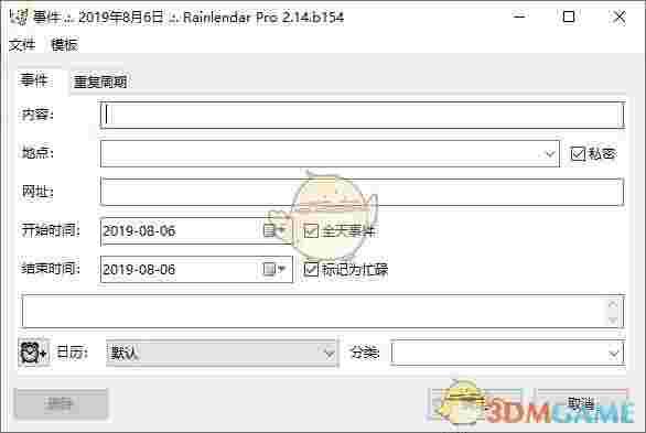 说完外表说内里。小巧,免费,功能强大,支持中文语言包,就这几点就可以满足绝大多数人的要求了。如果你非要找茬说你用的是linux的话,不好意思,Rainlendar也同样支持。难道现在你还没有欲望来下载回来瞧瞧吗?另外还有皮肤和语言包哦。Rainlendar占少量系统资源,可以设置半透明效果。它没有太多烦琐的设置,你可以设置它的4种位置方式(总在最前,总在最后,普通窗口和钉在桌面上),当然Rainlendar也像其他桌面日历一样,有个非常不错的事件提醒功能,防止有重要事情由于在看电影或游戏中而错过。