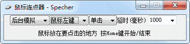 《Specher》鼠标连点器简单来说就是一个很鼠标连点的脚本,让用户的鼠标可以一直处在自动连点的状态,常用在游戏和抢红包的时候,有需要的用户快来下载吧!