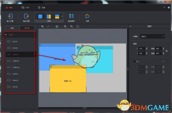 三、进入操作界面后,可以拖动你所拥有的设备,将其视频拖入操作栏中进行合并。