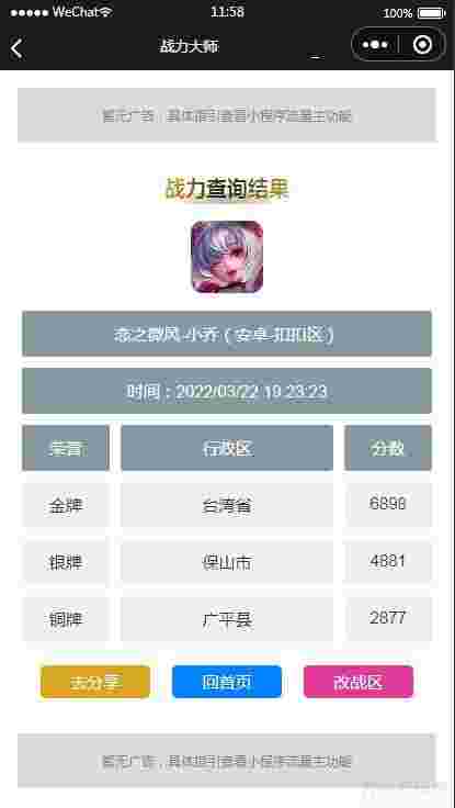 【王者荣耀战力查询源码】最新云开发微信小程序王者查询源码 带流量主