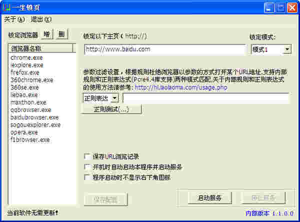 支持白名单/黑名单功能,您可以通过一生锁页支持的规则(支持内部规则和正则表达式)来设置浏览器在启动时允许/禁止打开哪些URL;