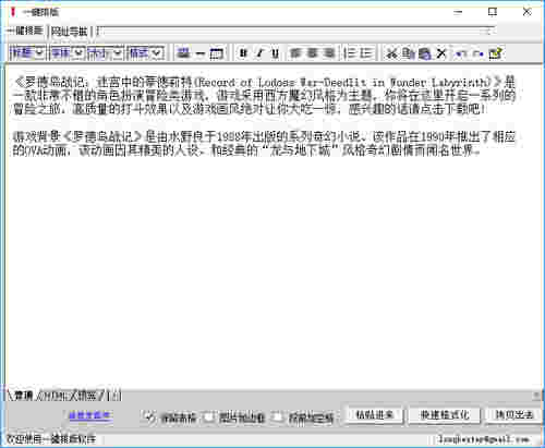 一键排版工具是一款专业的文字排版的工具软件,支持是否在段前添加两个全角空格、是否为图片添加1像素边框、是否保留文章内容中的表格等。十分方便快捷,界面简约,布局直观清晰,极易上手,是一款不可多得的利器。