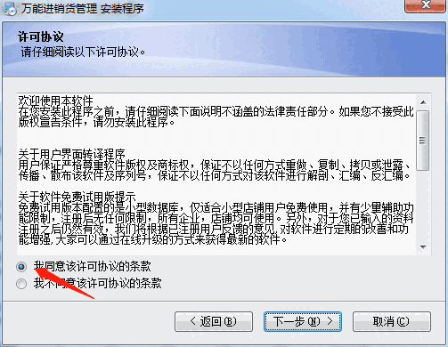 3、勾选红色箭头处的我同意接受条款选项,点击“下一步”