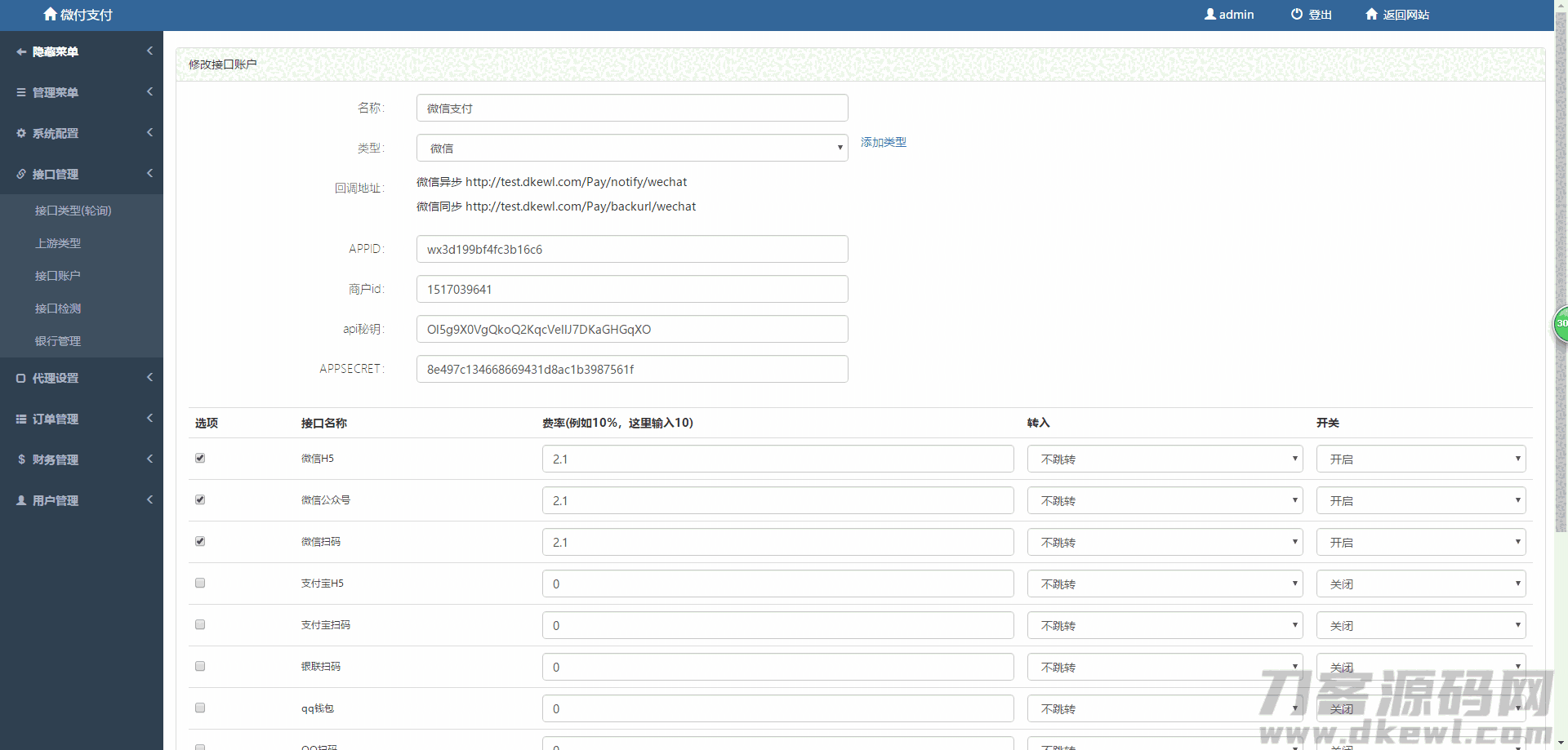 支持轮询,支持防封域名跳转,支持支付宝分账,支持代理,支持认证进件,支持接口检测,其他的自己看吧。我自己也讲不完了
