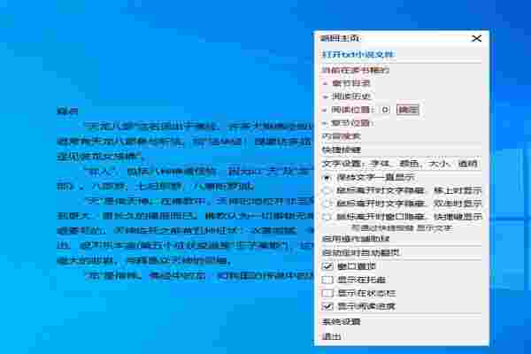 上班偷看小说阅读器是一款专业的小说阅读的软件工具,软件支持列表项目、目录功能、阅读历史记录、隐藏软件等功能。十分方便快捷,界面简约,布局直观清晰,操作简单,极易上手,是一款不可多得的利器。