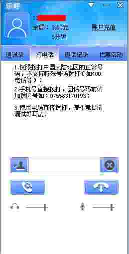 乐呼亲情免费电话是一款专业的网络电话的软件工具,软件可以帮助用户使用电脑就可以拨打移动电话或固定电话。非常方便快捷,软件界面简约,布局直观清晰。操作简单,容易上手,是一款十分实用的工具。