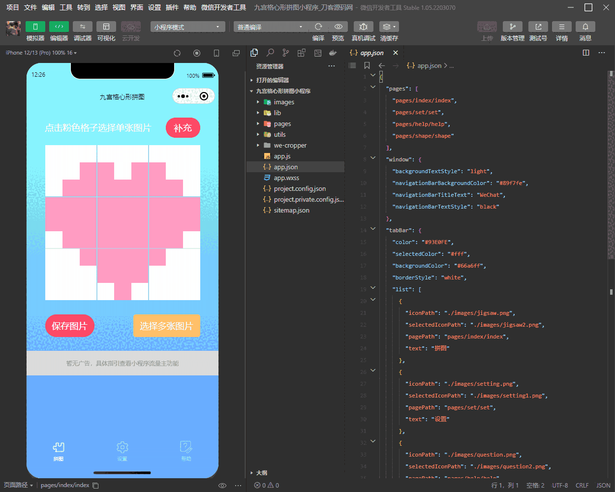 九宫格心形拼图小程序源码带流量主微信小程序源码
