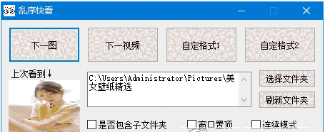通过点击“下一图”、“下一视频”、“(下一)自定格式1”、“(下一)自定格式2”来随机打开下一图片、视频、自定1格式、自定2格式 文件。