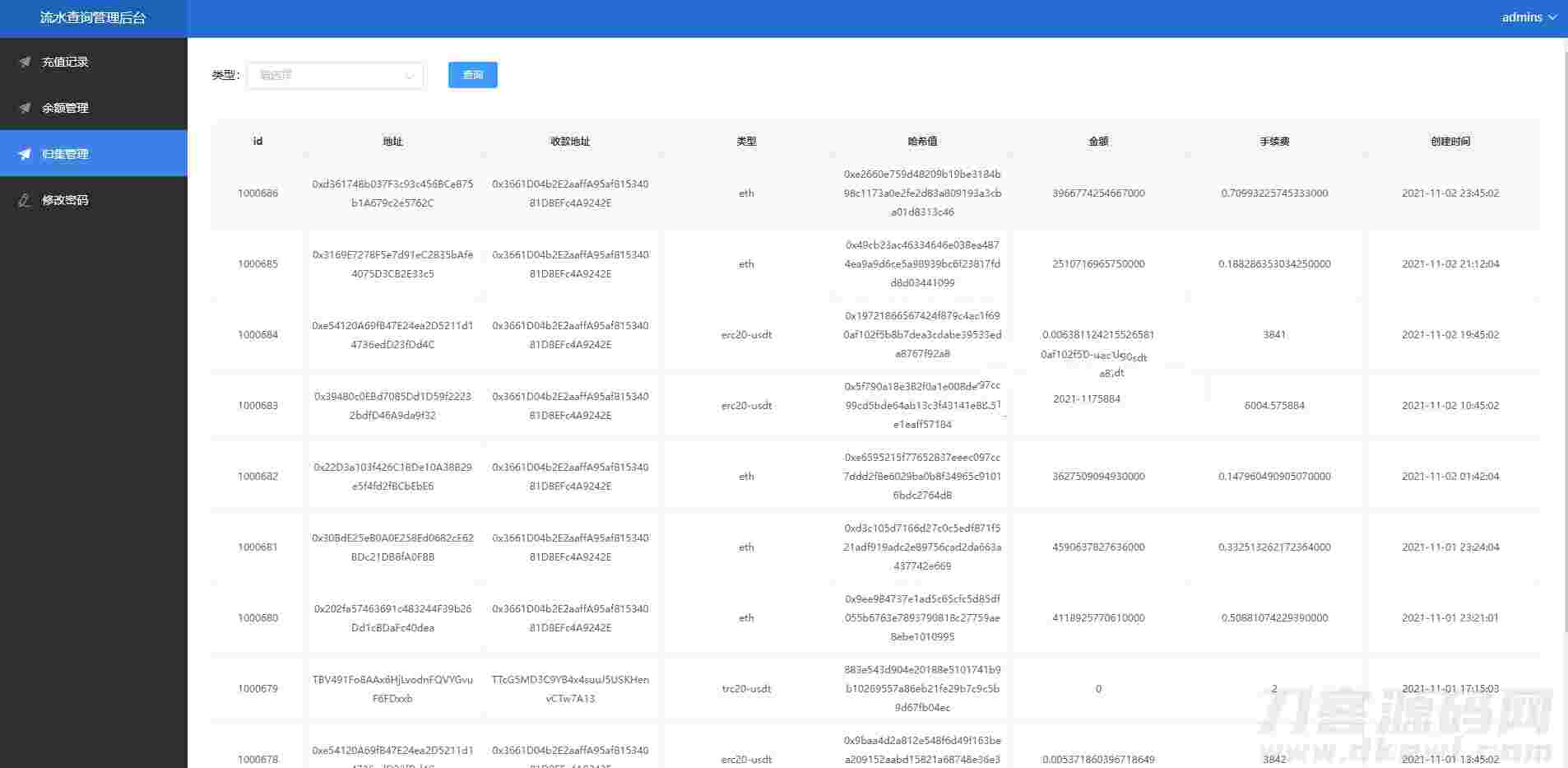 二开版流水查询系统/虚拟币查询多方式提币系统源码下载