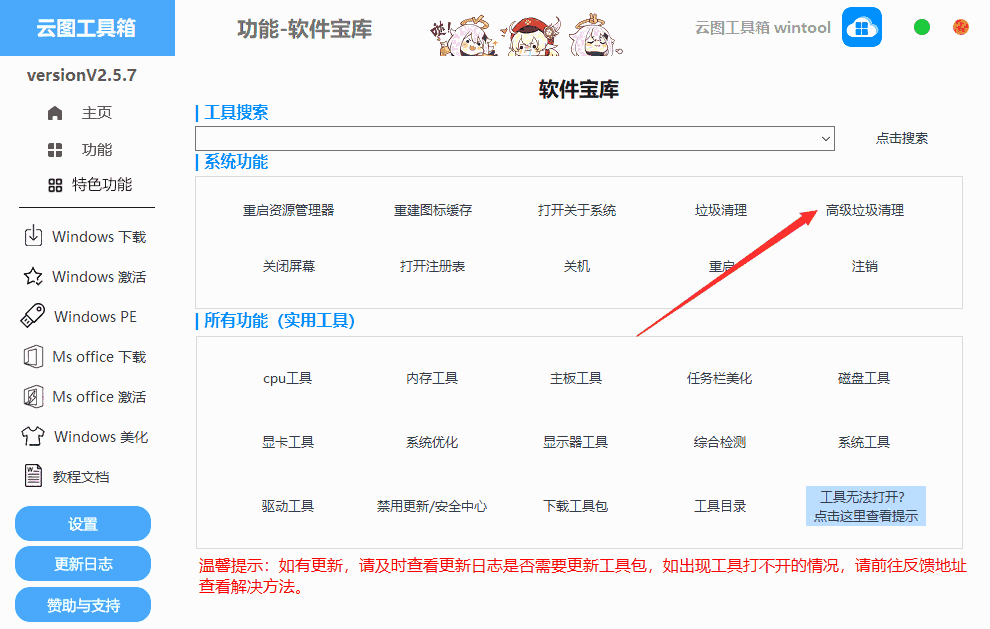 云图工具箱是一款非常好用的电脑系统优化软件,这款软件当中提供了丰富的系统优化管理功能可以帮助用户更好的操控自己的电脑,使得用户能够在使用的时候便捷式的对电脑系统以及内存等进行管理优化,非常的好用,是一款很不错的软件,对该软件感兴趣的小伙伴千万别错过,快来下载吧!