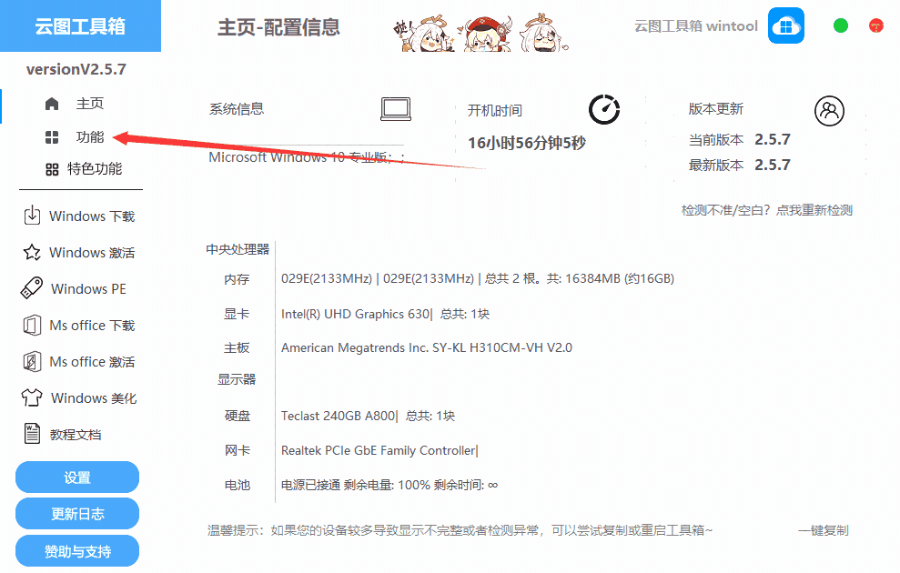 支持对当前的电脑系统进行激活,如果自己的电脑系统没有激活就可以利用其一键激活。