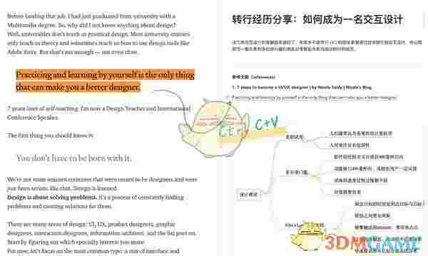 方法1: 双屏模式下,直接使用 Ctrl/Cmd C+V 将所选内容粘贴到右侧文档,创建内容互链。