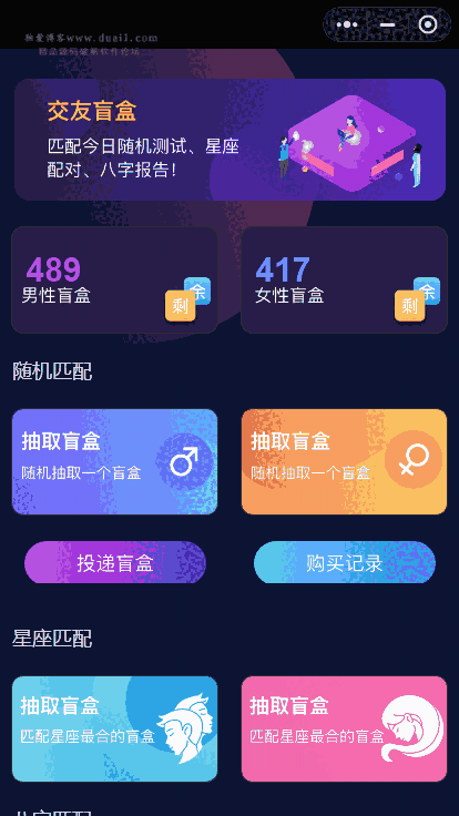 9080免费资源分享,PHP源码、网站源码、游戏源码、模板插件、软件工具、网络教程、为中国站长提供一站式源码下载 » 交友盲盒小程序版本 全开源版本kxdao首发