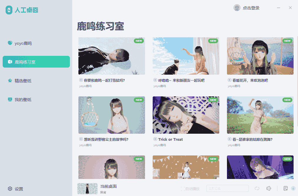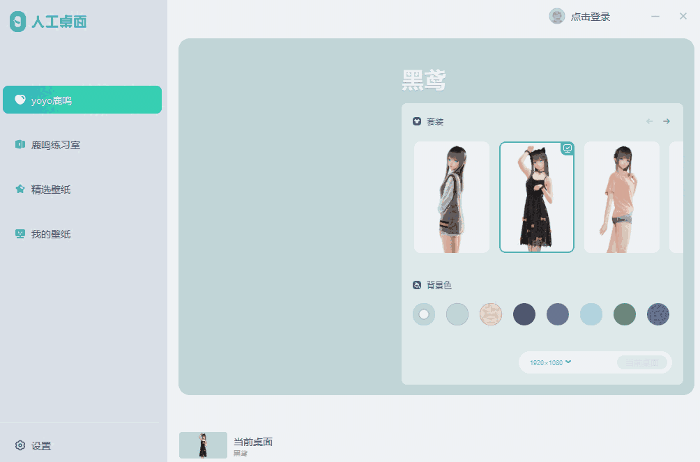 人工桌面是米哈游旗下一款专业的桌面美化的工具软件,软件拥有二次元人气虚拟偶像yoyo鹿鸣并搭配多种主题衣服任意挑选。十分方便快捷,界面简约,布局直观清晰,操作简单,极易上手,是一款不可多得的利器。