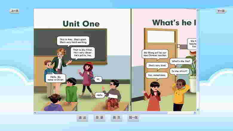 看一看功能:系统会自动在画面下方出显当前画面中的英语句子的中文,用户可以通过鼠标寻找相应的英文。并有提示音提示选择对或错