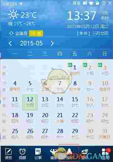 1、首先我们在本站下载安装好人生日历软件后,就可以打开软件进入主界面,如下图所示,在界面的下方有便签、提醒、记事、壁纸等选项,我们点击报时进入该界面。