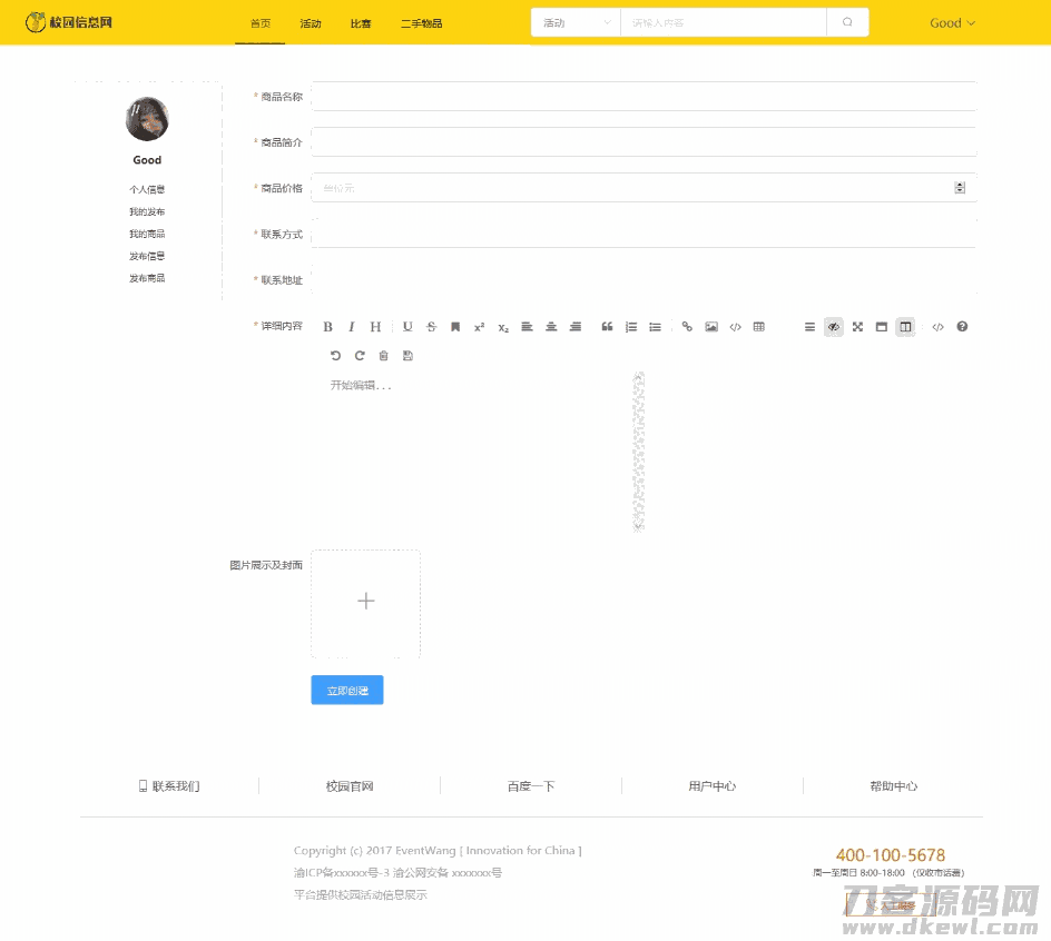 二手物品信息展示 信息搜索 发布活动和比赛以及商品
