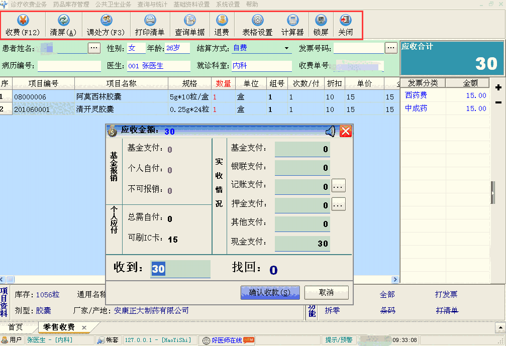 看诊、病历采集、诊断、开具处方、收费在一个界面完成。
