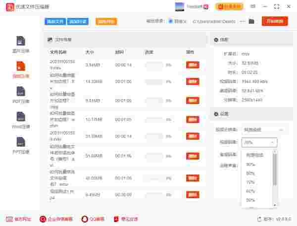 支持MP4、flv、avi、mov、wmv、mkv等十余种视频格式,可对视频分辨率进行快速的压缩。