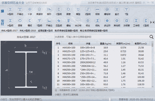 优雅型钢五金大全是一款专业的材料计算器的工具软件。软件支持计算和显示五金材料的数据包括规格、长宽高、重量、表面积、密度等等。使用者也可以使用软件快速查找自己所需要的材料及其对应的材料数据,使用起来还是很方便快捷的,是一款很实用的工具。