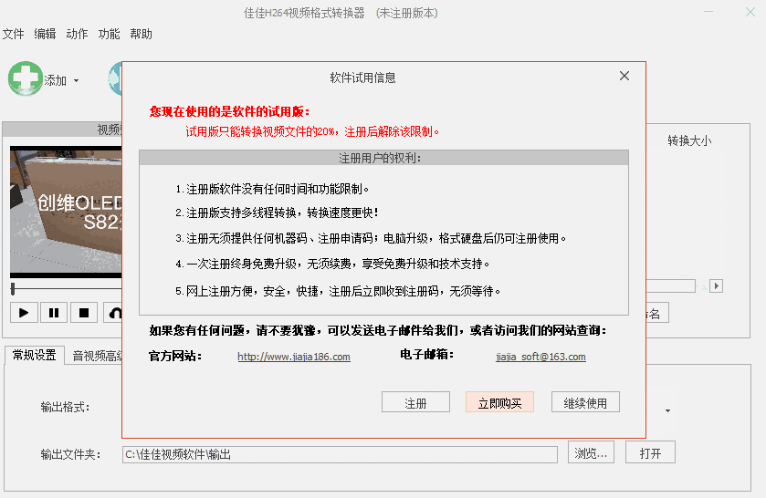 佳佳H264视频格式转换器未注册版为免费软件,无捆绑软件