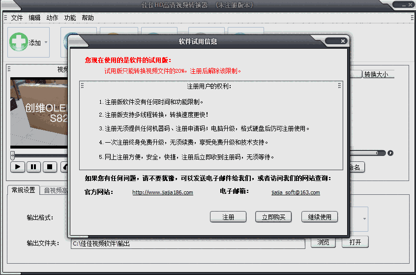佳佳HD高清视频转换器未注册版为免费软件,无捆绑软件