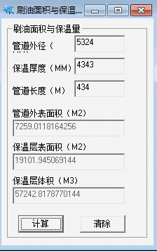 保温计算小软件是一款专业的管道保温计算的工具软件。软件支持计算外表面积、保温层表面积、保温层体积等。软件的使用方法很简单,只需要将所需的参数包括管道外径、保温厚度等输入进去后点击计算即可得到结果。计算过程非常快速,可以使用者简化人工计算流程。