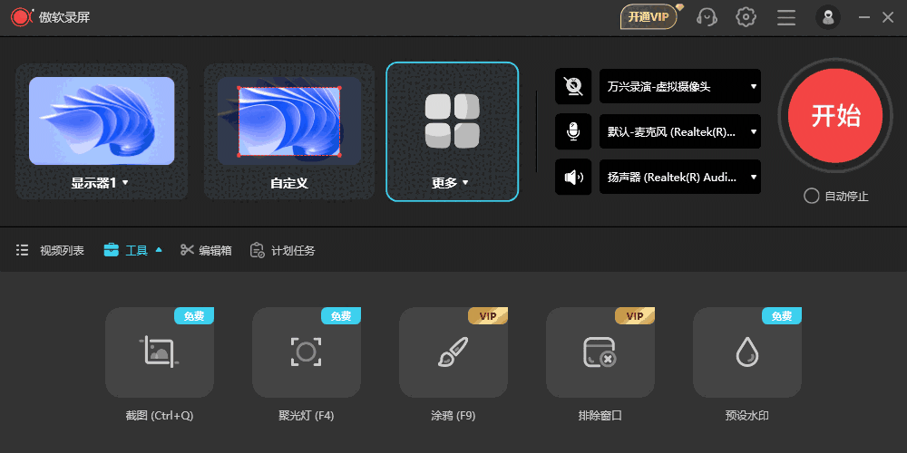 【高质量录音】支持声卡和麦克风中声音的高质量录音,允许用户调节音量和自定义声源。