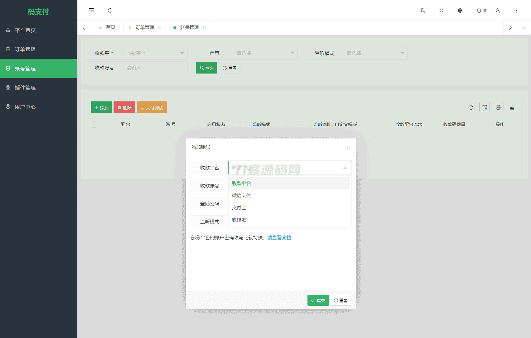 支付宝插件alipay默认安装,支持收钱码、经营码,2个通道,需挂机监听