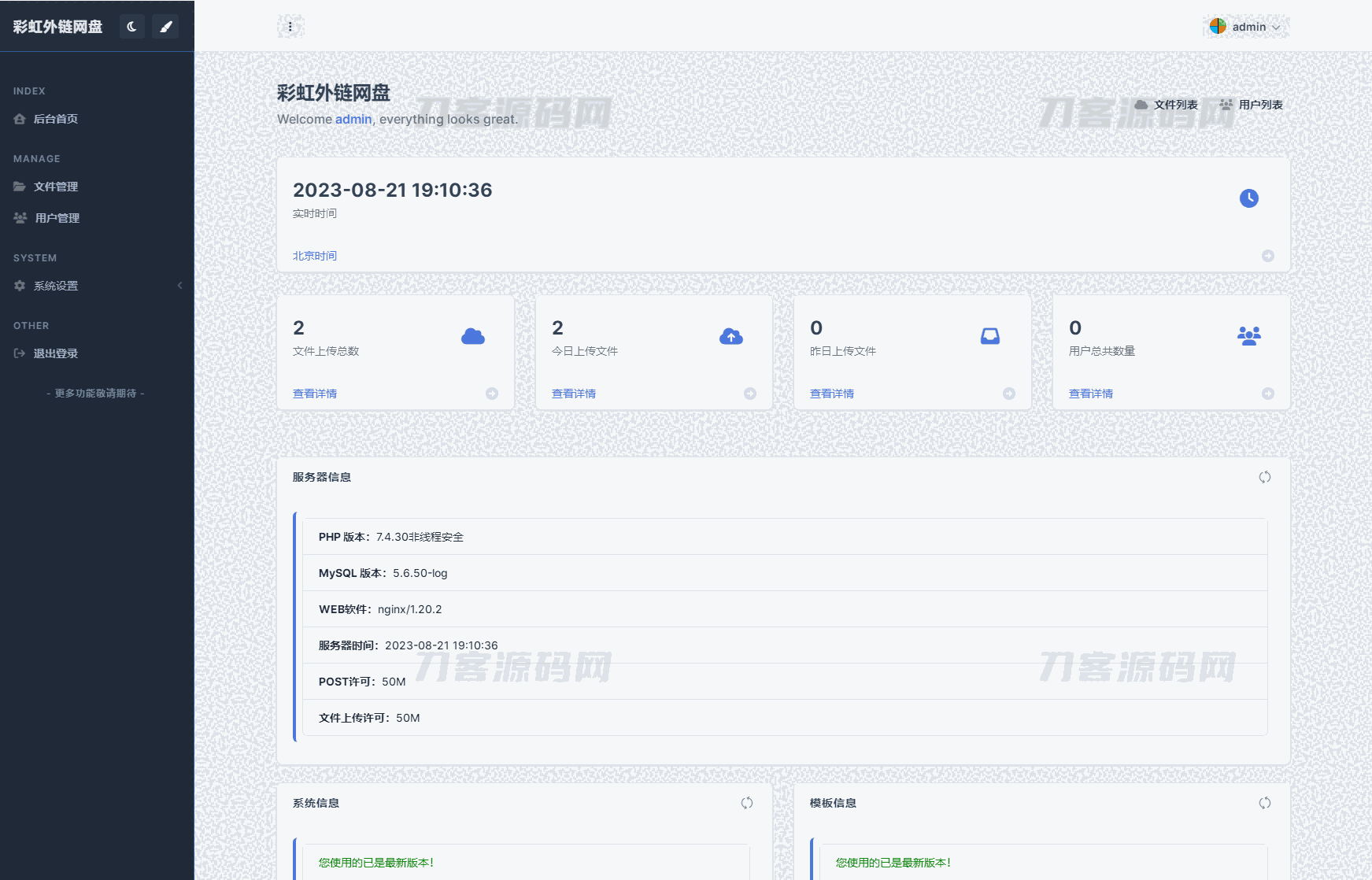 全新UI彩虹外链网盘系统源码/前后端美化模板/整站+模版文件