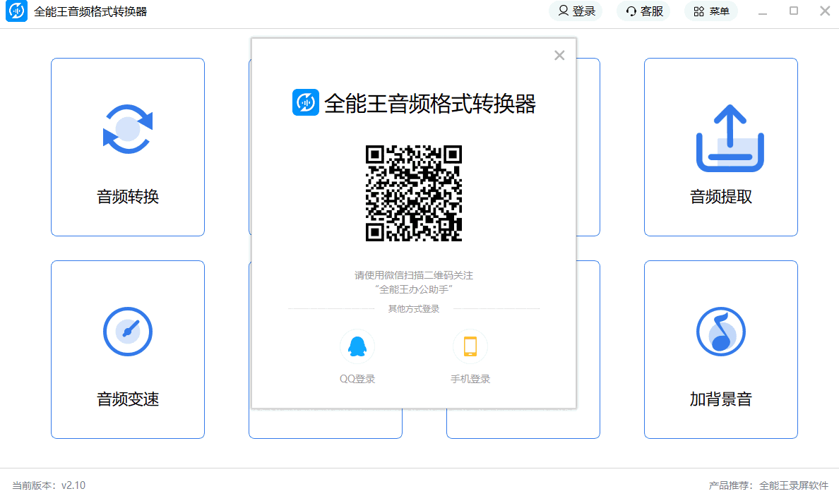 全能王音频格式转换器是一款专业的音频编辑和音频格式转换的工具软件,支持acc、mp3、wav、ogg等音频文件格式之间的互相转换。十分方便快捷,界面简约,极易上手,是一款不可多得的利器。