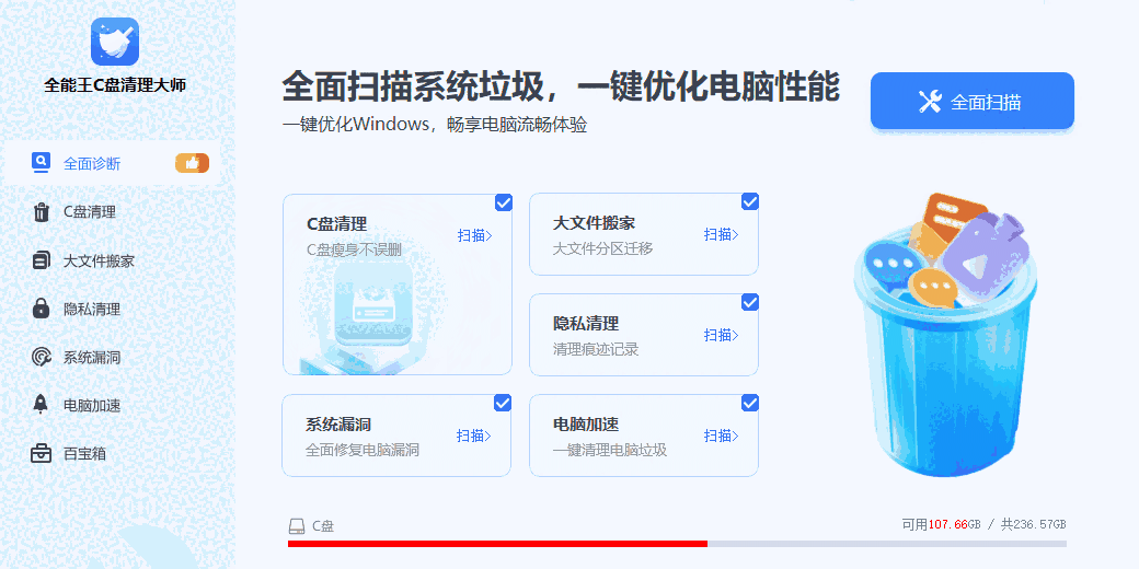 全能王C盘清理大师软件功能
