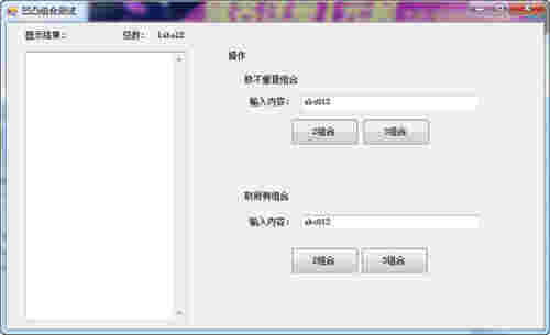 凹凸组合测试软件是一款专业的开发控件的工具软件。软件可以帮助使用者实现阿拉伯数字与英文字符的不同排列组合作为控件名字的解决方法可以直接提供给VS使用。软件的界面简约,功能按钮布局都比较直观,很容易上手操作,是一款十分好用的工具。