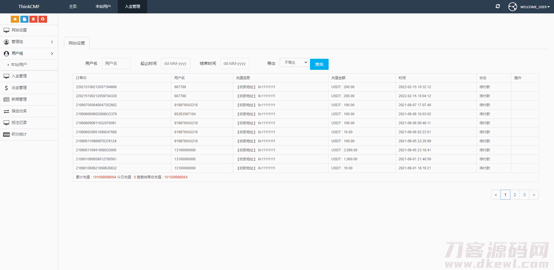 出海源码英文版虚拟币投资系统/USDT充值