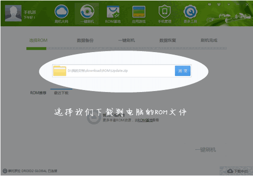 3、点击【浏览】按钮,选择刚刚我们下载到电脑的 ROM文件
