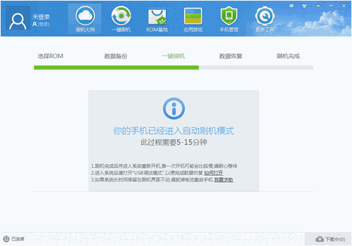 4、点击【一键刷机】按钮,进入自动刷机的流程,刷机大师将为您带来全自动的刷机体验!