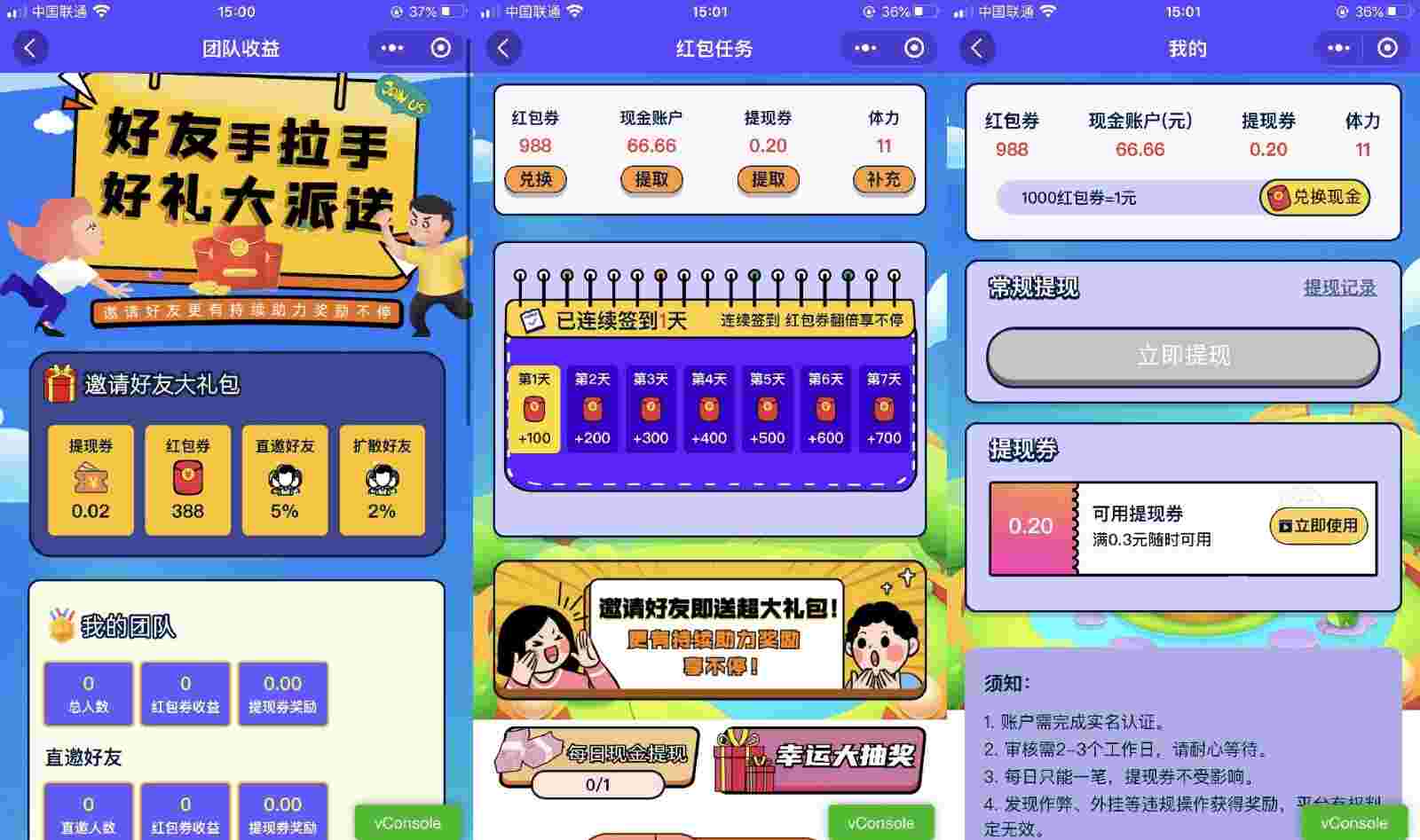 支持红包每日任务,邀请好友礼包(团队奖励)