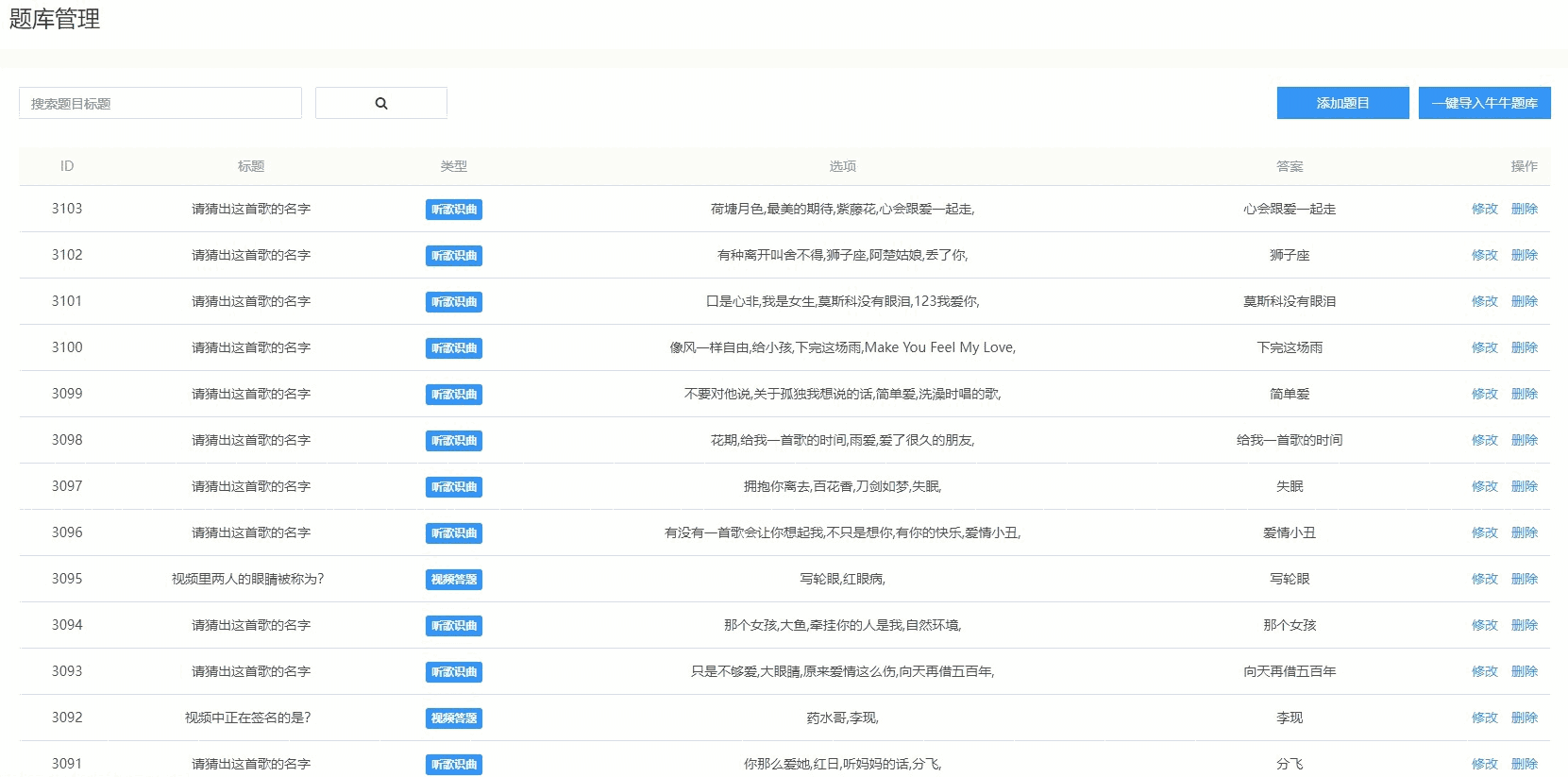 支持听歌猜歌答题