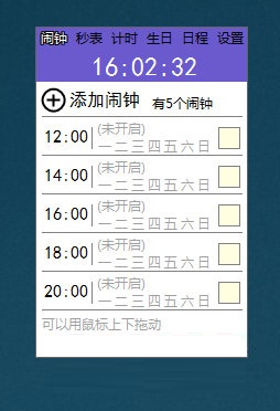 闹钟类软件,有闹钟、秒表、计时、生日、日程 等功能。